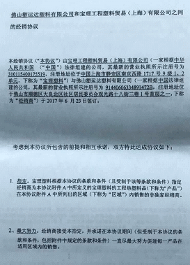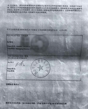 下图即该公司所持的经销协议,经我们核实,确认该协议系伪造。